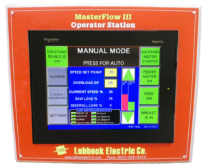 Lubbock Electric’s MasterFlow™ III Gin Stand Control takes advantage of advances in touch screen and programmable controller technology to enhance your ability to control your gin stands remotely and protect your equipment.
