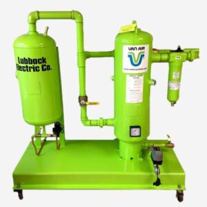For cotton gins, we have designed a specialized single tower air drying system with a “Knockout Pot,” instead of the typical cooling fan which is unsuitable in cotton gins.